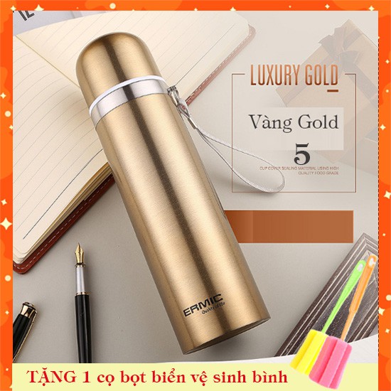 🔥HOT🔥 Bình Giữ Nhiệt Ermic INOX 304 - 500ml (TẶNG Cọ Bọt Biển Vệ Sinh Bình)